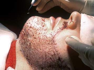 En termes simples, il s’agit d’une technique chirurgicale qui consiste à implanter des follicules pileux dans les zones clairsemées ou dépourvues de poils de votre barbe. Ces follicules sont généralement prélevés à l’arrière du cuir chevelu où les cheveux sont plus épais et ressemblent le plus aux poils de barbe. Cette intervention aura alors pour but d’épaissir la barbe, de combler les zones dégarnies et de redéfinir les contours de votre barbe pour un look plus harmonieux.