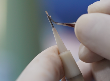 Les implants capillaires prélevés sont, par la suite, chargés dans le stylet Choi. Le chirurgien les implante alors immédiatement dans la zone dégarnie en contrôlant leur angle, leur profondeur et leur direction.