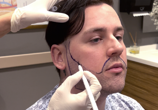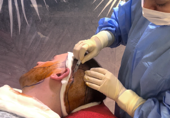 Lors du jour J, la zone donneuse, notamment l’arrière du crâne, va d’abord être rasée. Ensuite, les parties à traiter sur le visage vont être marquées pour guider le praticien pendant l’implantation. Enfin, une anesthésie locale est appliquée sur la zone donneuse et receveuse.